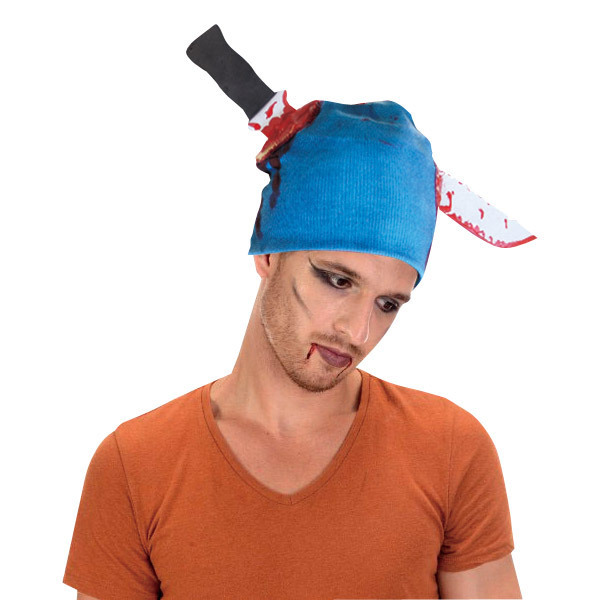 ●深めにかぶれるワッチキャップ●鮮やかでポップなブルーカラー●グサリ!ナイフ貫通デザイン●リアルな血のりペイント付き●男女不問なフリーサイズ。