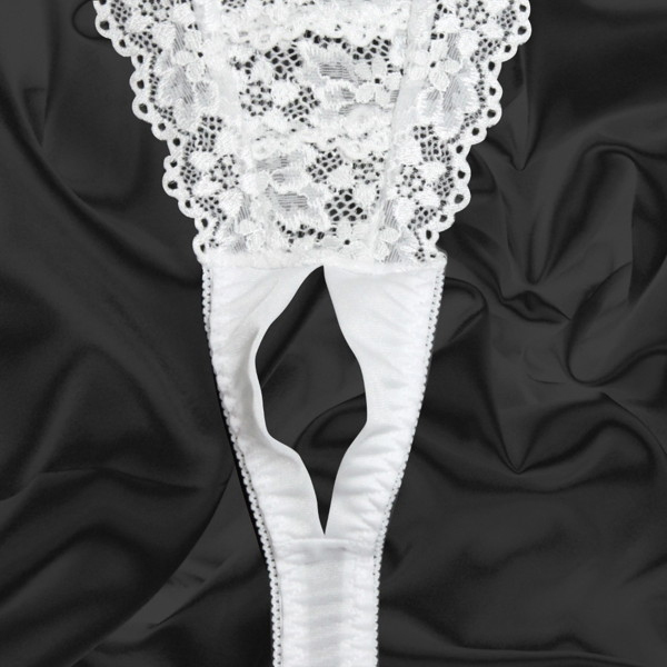 トリコット生地フラワーレース脇紐オープンTバック ホワイト