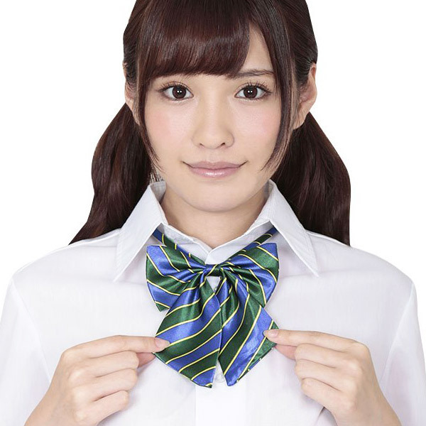 きゅん可愛スクールリボン ブルー&グリーンストライプ
