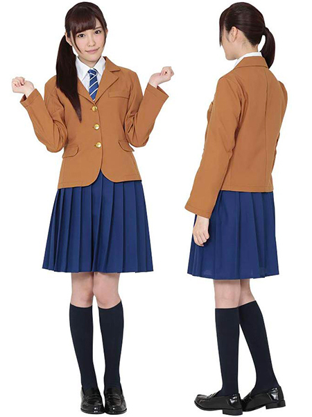 タイトなサイズ感とベージュのカラーが新鮮な制服っぽさ抜群の制服コスプレです。