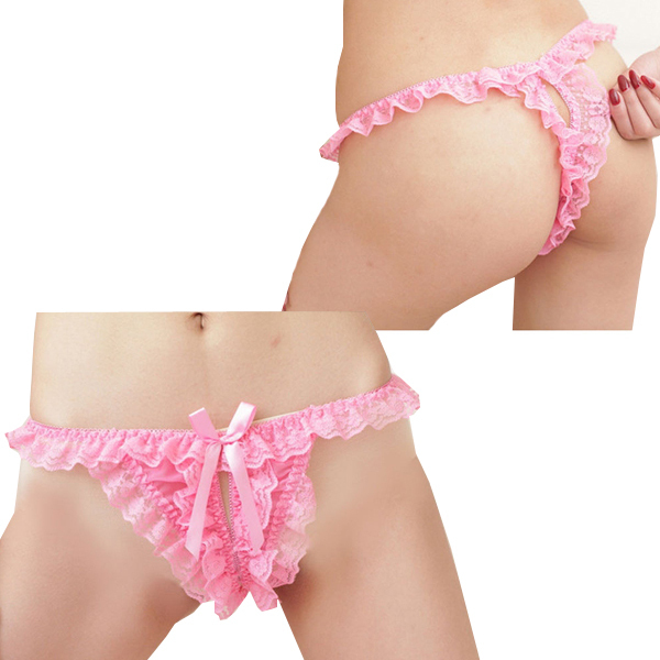 レースの揺れ感が際立つオープンショーツ ピンク