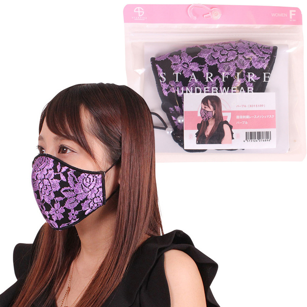 日々のマスクコーデに!紫の薔薇刺繍レースがお洒落な三層構造仕立ての大人用マスク。