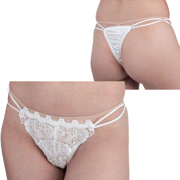 肌触りのいい光沢レース付き脇2本ゴムTバック ホワイト