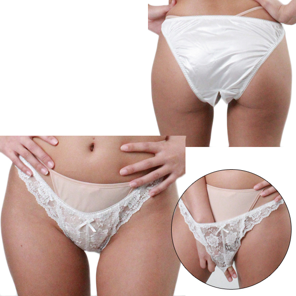 柔らかな光沢生地にレース付きオープンフルバック 2Lサイズ ホワイト