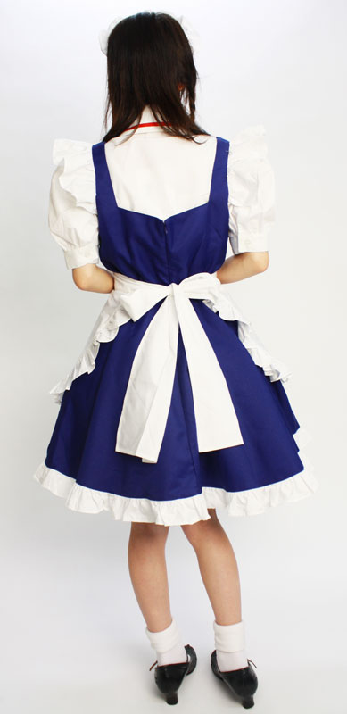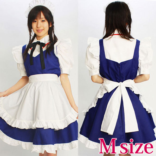 ■仕様:Mサイズ:B〜90cm・W〜74cm・ブラウス着丈57cm(肩幅38〜42cm)・ワンピース着丈82cm・エプロン40cm・リボンタイ30cm セット内容:ブラウス(前ボタン留め)、ワンピース(後ろファスナー、肩にフリル)、エプロン、リボンタイ(長さ調整可)、カチューシャ