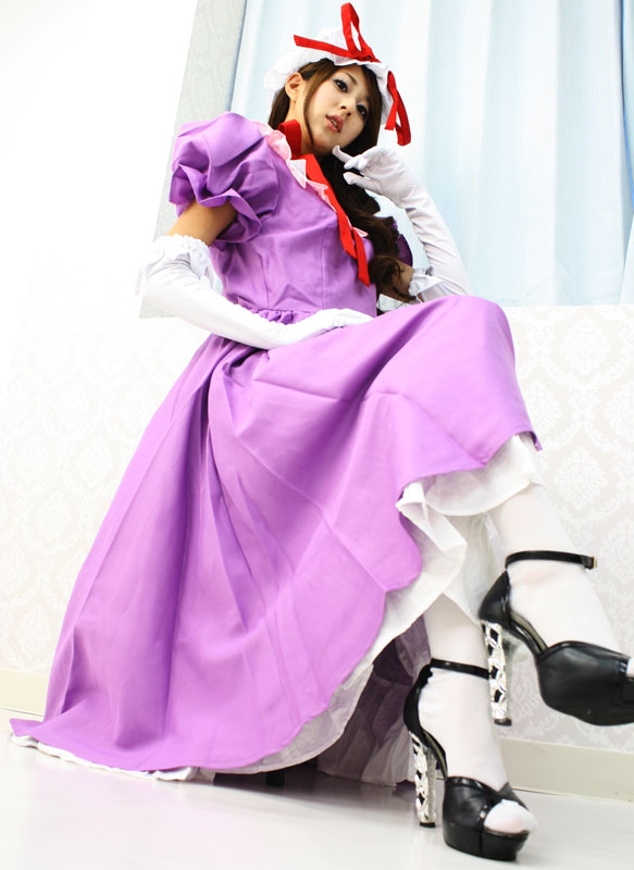 また、当方といえば対戦格闘型ゲームの東方緋想天が特に人気ですが、その東方緋想天においての八雲紫の怒りの台詞は有名ですね♪こちらのアニメコスチュームはそんな東方・八雲のイメージである紫×白をベースとしたカラーで独特のオーラを放つコスチューム。