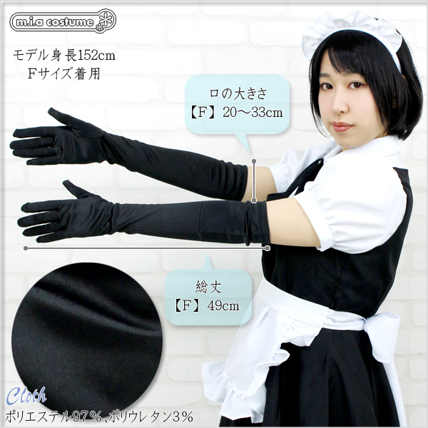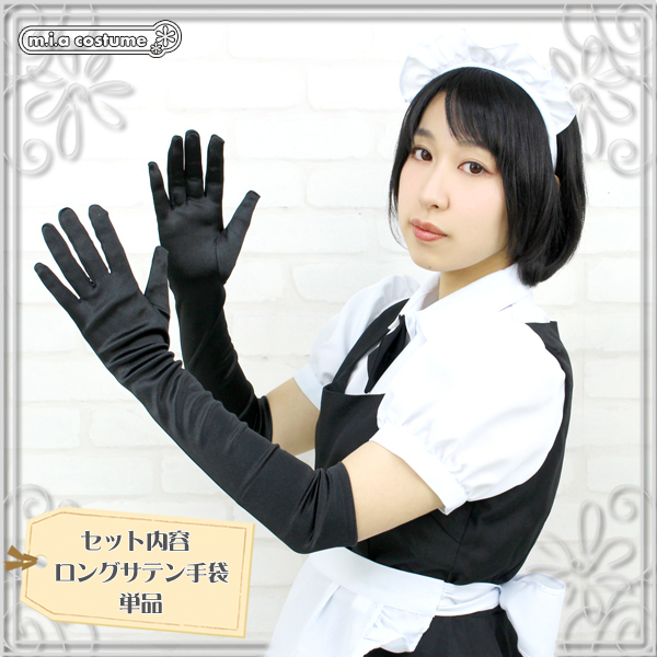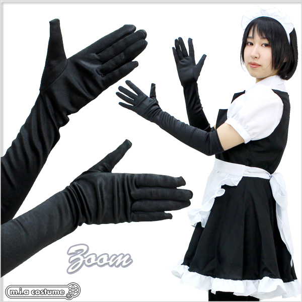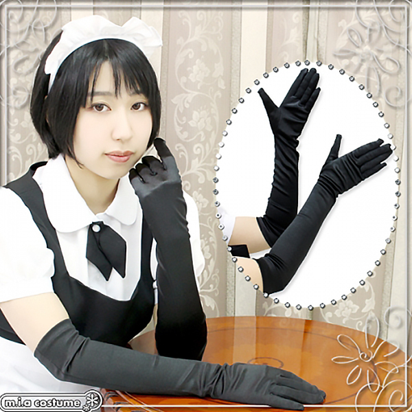 プリンセスドレス、メイド服、チャイナドレスなどのコスプレやワンピースにも合わせられるロング手袋(黒)。