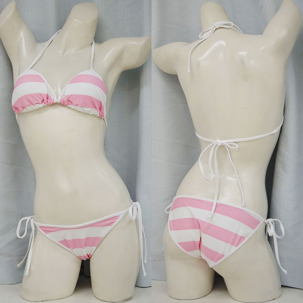 パステルカラーで萌え感たっぷり!ピンク×ホワイトのボーダー柄ビキニセットが登場しました。