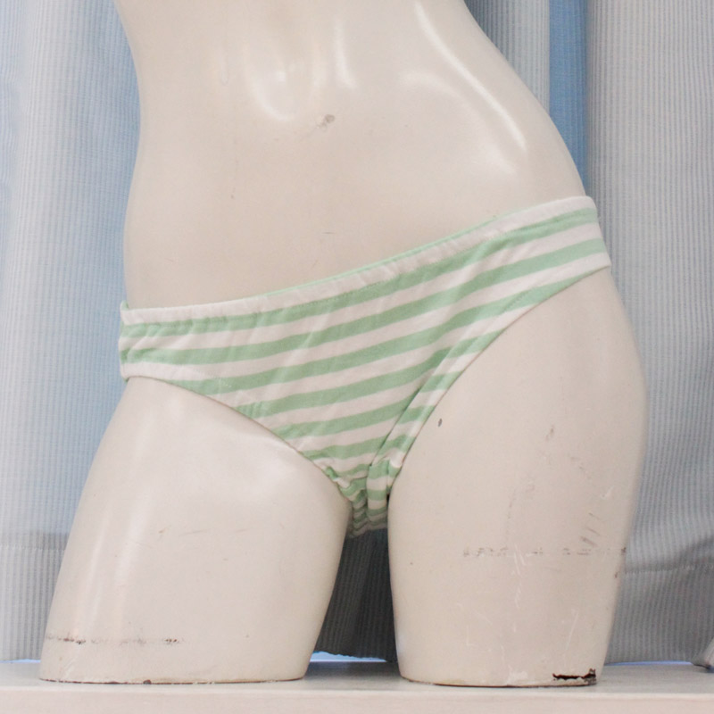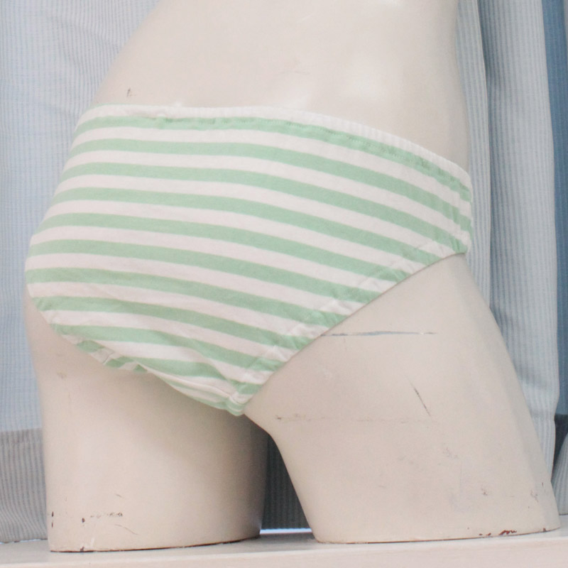 絶大な人気を誇るグリーン×ホワイトのしまパンに、細めの中ボーダー柄が登場!細かいしましま柄がとってもラブリー!普段使いはもちろん、短め丈のコスチュームとあわせれば、見せパンとしてもバッチリ活躍してくれるな萌え系ショーツです。