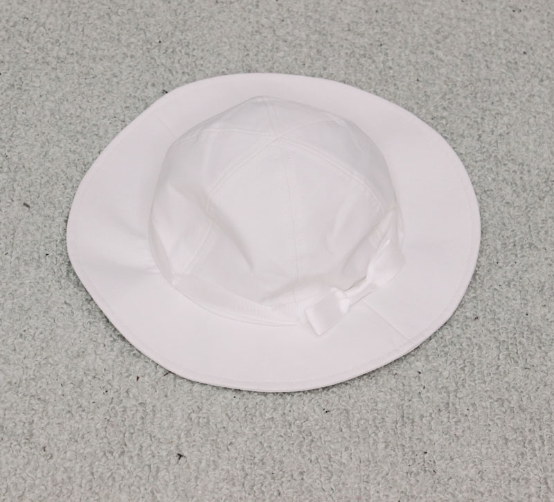 サイドに可愛らしいリボンがちょこんとついた、昔懐かしいゴム付き帽子単品(M)。