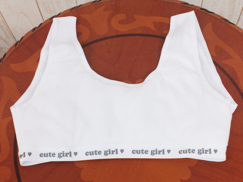 キュートガールに変身!純白リブ編み仕様のリアルなスポーツブラ単品(M)。
