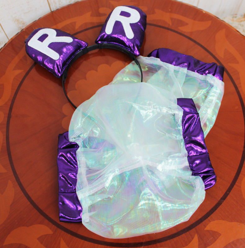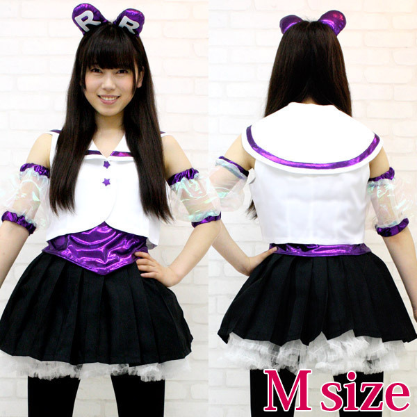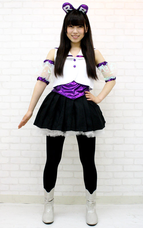 光沢のあるパープルカラーのインナーに、短め丈の襟付きベストがとってもキュート!セット内容も充実した、完全なりきりアイドルコスチュームです。