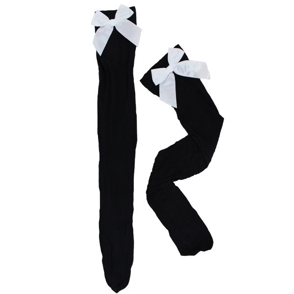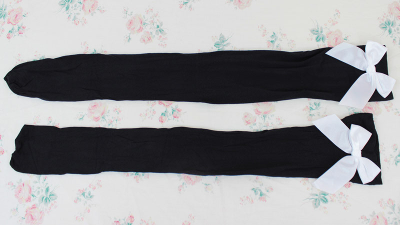 ●伸縮性のあるブラックニーハイ●履き口部分に真っ白リボン付き●万能に使えるシンプルなカラー●デイリー・デート・コスプレに。