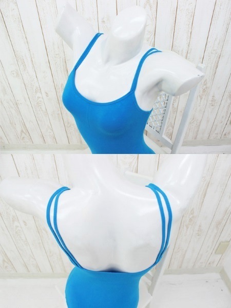 キレイで涼しげなブルーカラーのキャミソール風レオタード(M)。