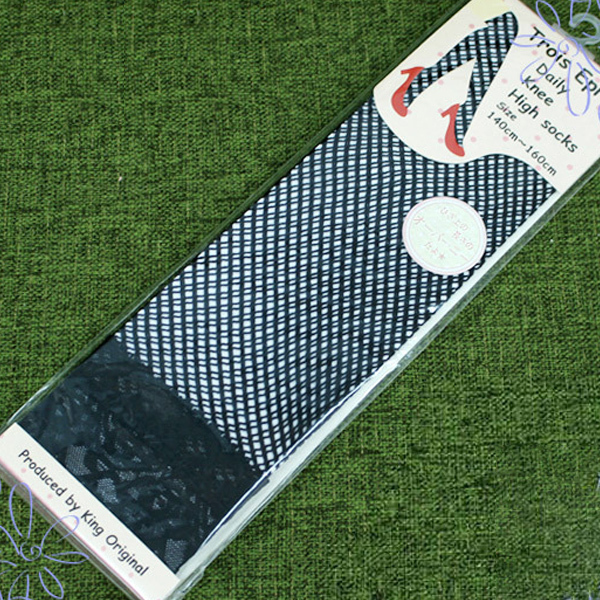 レース付き細メッシュニーハイソックス 黒 140〜160cm