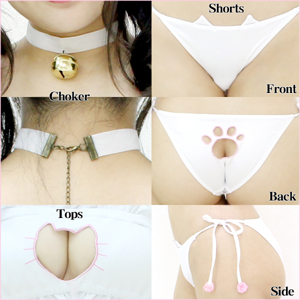 キミのために可愛くなるにゃん♪男女問わずハートを射止めるキュートな猫モチーフの水着が登場しました!フリル×猫のコラボレーション!ブラやショーツに所々取り入れられたネコが乙女心をくすぐります♪さらに後ろで留めるタイプの鈴つきチョーカーも付属。