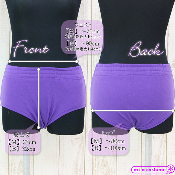 お気に入りの体操着やアニコス、制服衣装の魅せパンなど使い方は無限大!スカートの透け防止としてもお使いいただける紫ブルマです♪手洗いでのお洗濯可能、ドライクリーニングOK、塩素系漂白剤を使う場合、色落ちしてしまう可能性がありますのでご注意下さい。