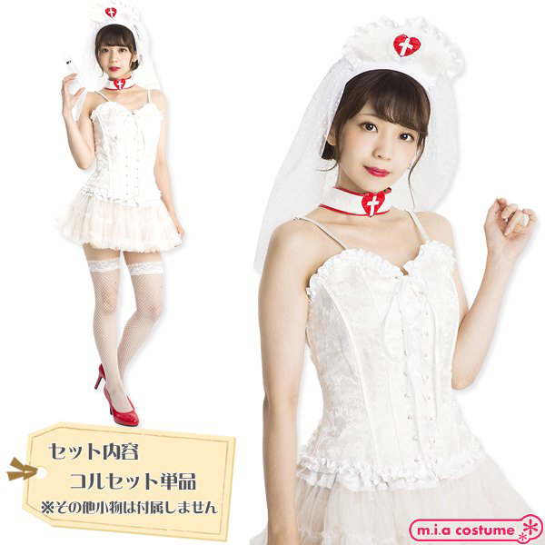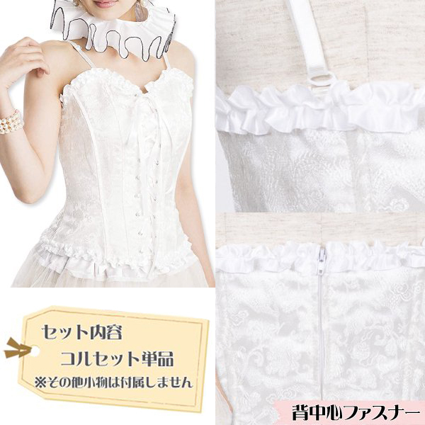 メイド服やロリータ、ゴシックコーデに欠かせないコルセットがプチプラで買える!骨を内蔵した純白カラーの花柄レースアップコルセット単品。