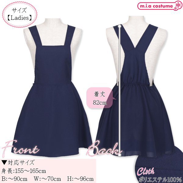 ■仕様:対応サイズ:身長155〜165cm・B〜90cm・W〜70cm・H〜96cm 実寸:着丈82cm セット内容:サロペット単品(左脇ファスナー) 素材:ポリエステル100% モデル身長155cm