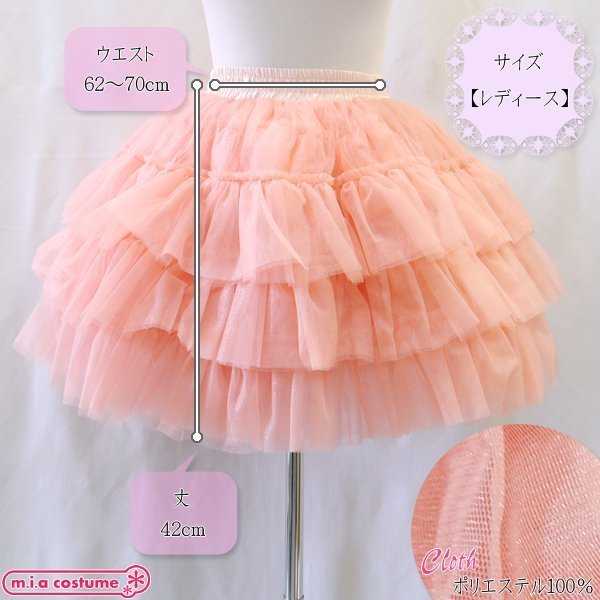 ■仕様:フリーサイズ:W62〜70cm・着丈42cm セット内容:パニエ単品(3段フリル) 素材:ポリエステル100%