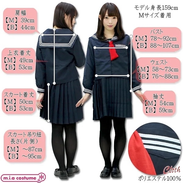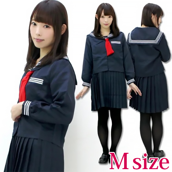 紺地に赤色はとっても映えます!シンプルなセーラー服ですが、吊りスカートがセットになっている本格派♪つくりはかなりしっかりとしているので本物と区別がつかないくらいのクオリティの高さです☆もちろん上下セットでお買い求めいただけます。