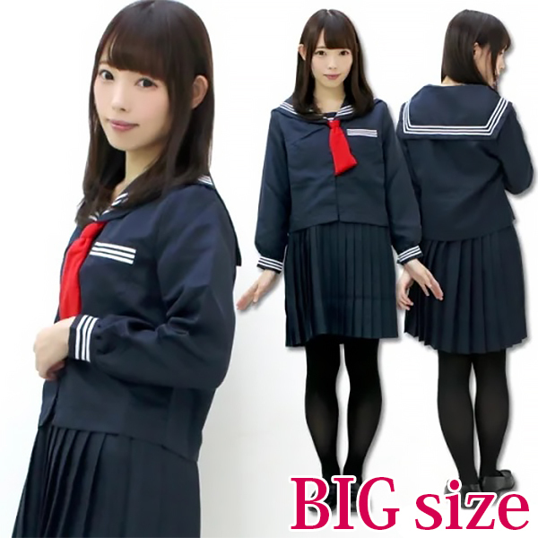 ■仕様:BIGサイズ:B88〜107cm・W76〜88cm・肩幅44cm・袖丈59cm・着丈(上衣53cm、スカート53cm)・吊り紐の長さ(片側)〜95cm セット内容:上衣(前開きボタン留め)、吊りスカート(横ファスナー、アジャスター調整可)、タイ 素材:ポリエステル100%